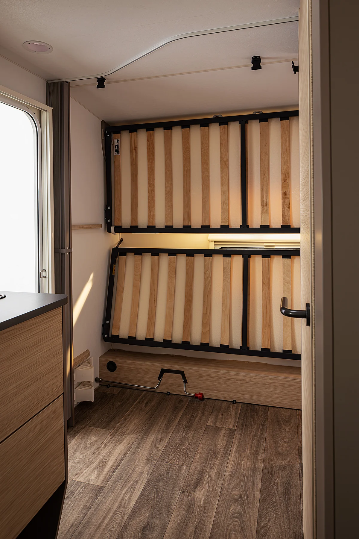 Akıllı alan kullanımı: Katlanabilir ranza yataklar, gündüzleri yaşam alanı yaratır. Gece için uyku alanları, gündüz için ferah bir ortam – NEXT, ritminize uyum sağlar.